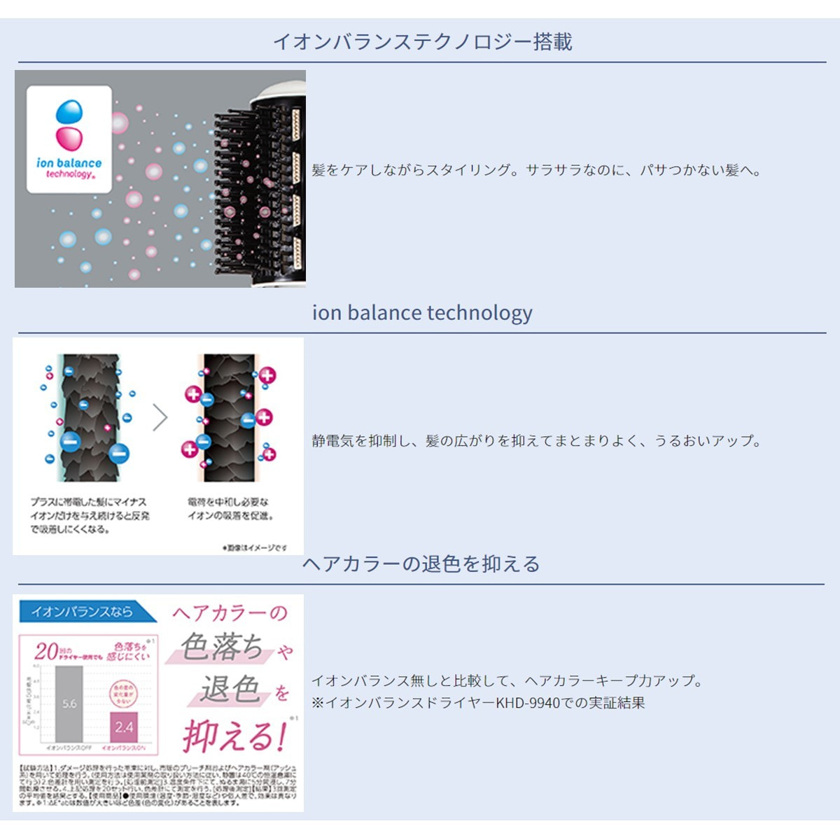 ※イオンバランスドライヤーKHD-9940での実証結果