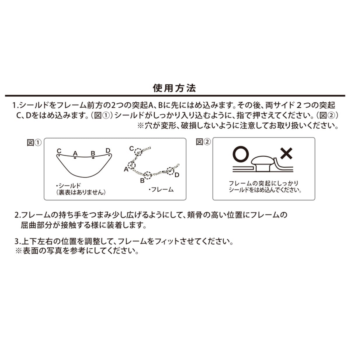 ①シールドをフレームに取り付けます。