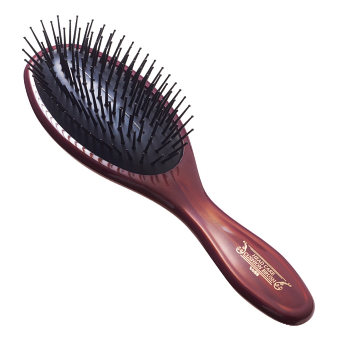 ふかふかのクッションが頭皮に心地よい、 静電気防止機能付きブラシです。