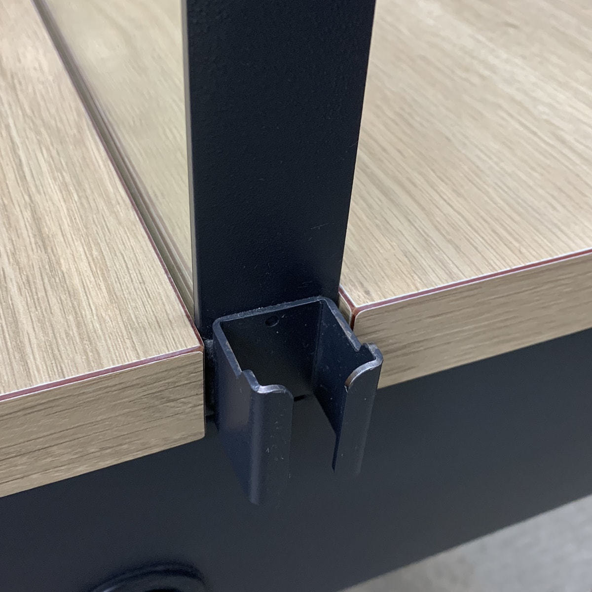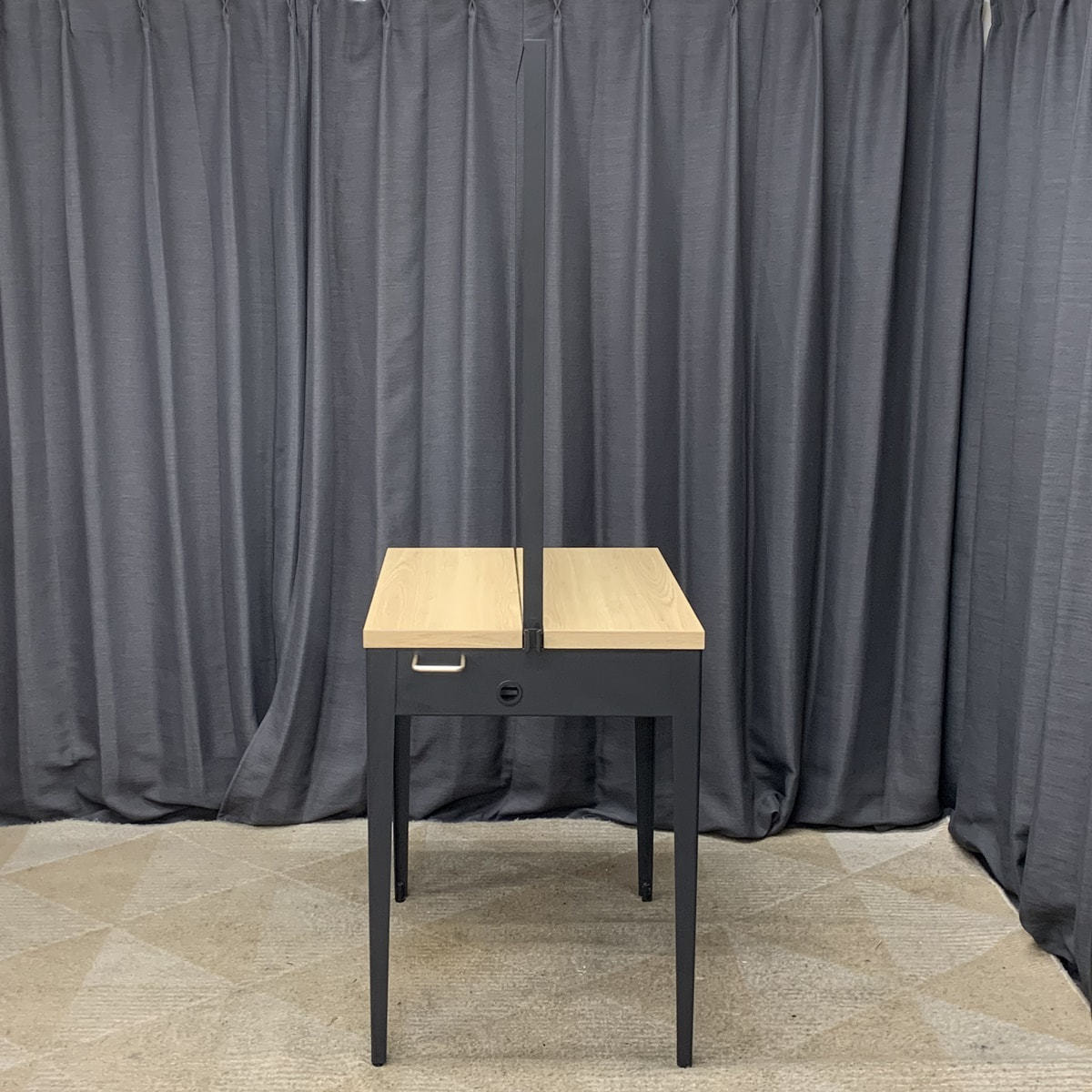 引き出し式のテーブルなので、お客さまの手の届く位置にマグカップや携帯電話を置いていただけます。