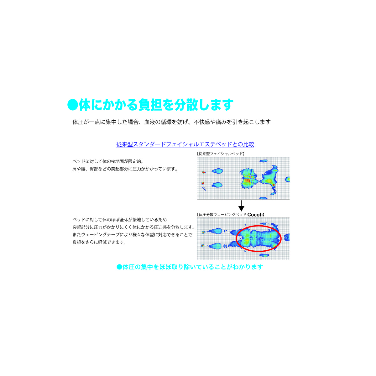 寝心地を最重視し、サロン様のために開発されたフェイシャルベッド「体圧分散ウェービングベッドCocoti」が登場いたしました!