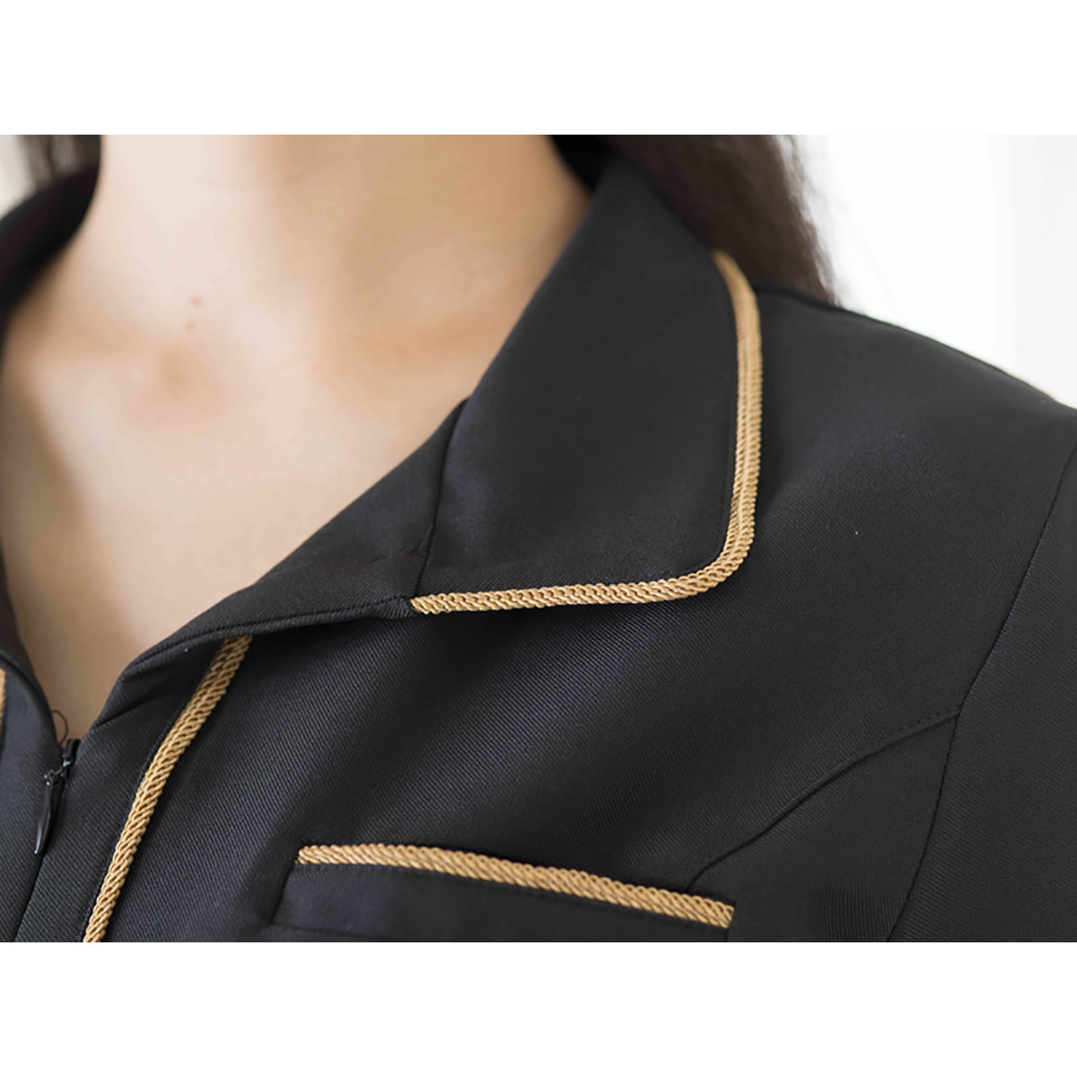 贅沢なパイピングで大好評のノワールシリーズに洗練された印象をそなえた衿付きスタイルが仲間入り。