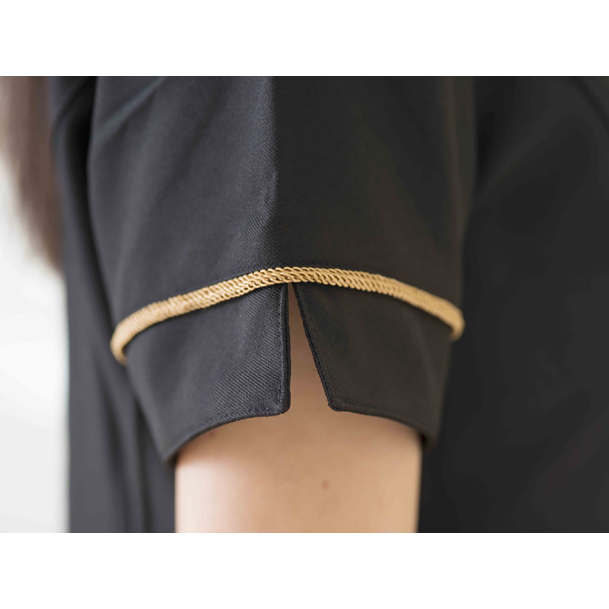 肌をきれいに魅せるブラックにベージュパイピングがマスト。