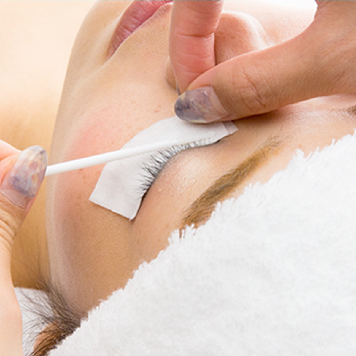 綿棒やマイクロスティックなどに本品を含ませ、まつ毛を上下から挟み、汚れを拭き取ります。