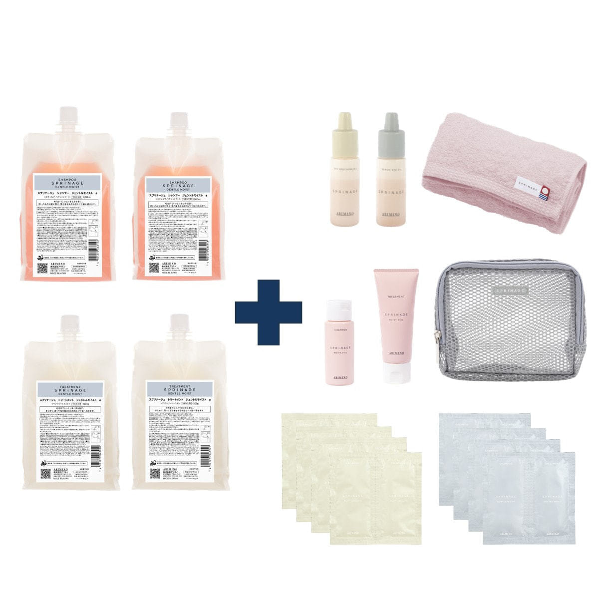 『ジェントルモイスト』と『モイストヴェール』のシャンプー&トリートメント(1L×各2本)に、非売品スペシャルギフトBOXが付いた特別商品。