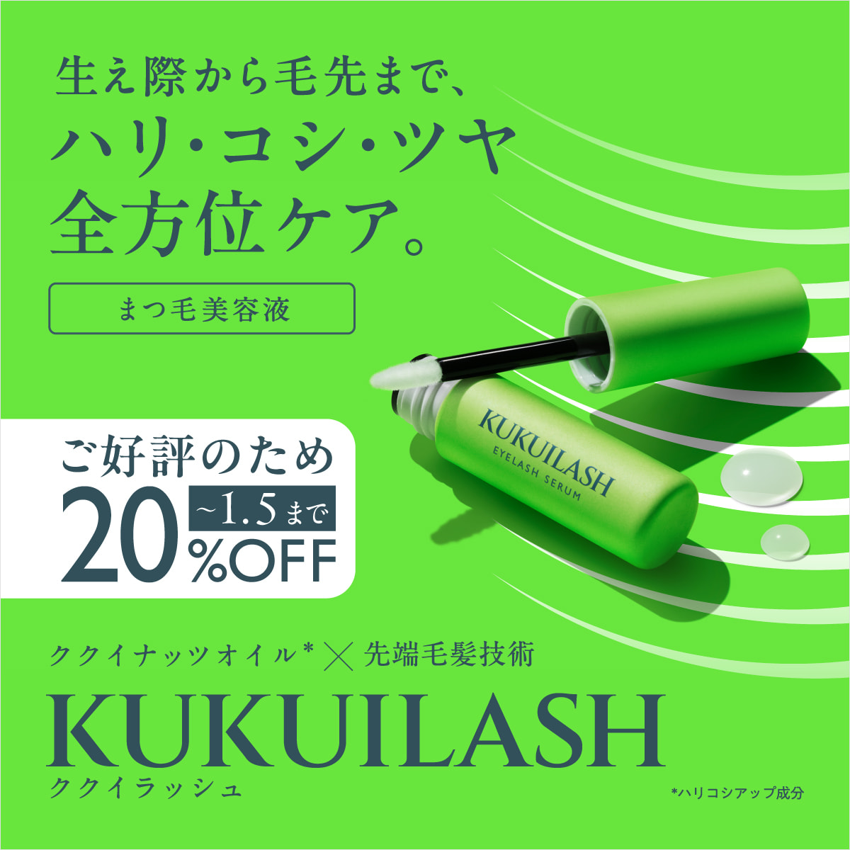 【KUKUILASH】すっぴんでも印象的なまつ毛へ導く美容液が20%OFF!~1/5(月)まで
