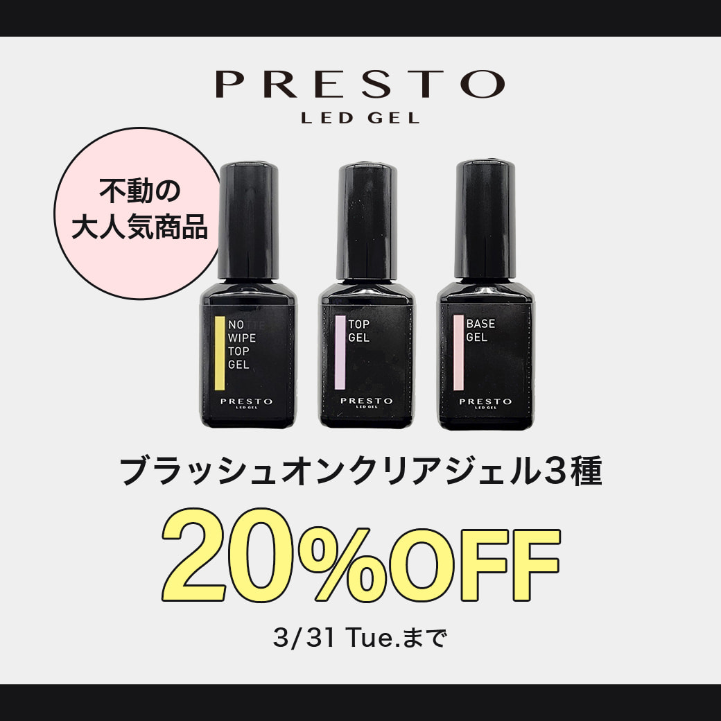【PRESTO】ブラッシュオンクリアジェル20%OFFキャンペーン開催中!3月31日まで