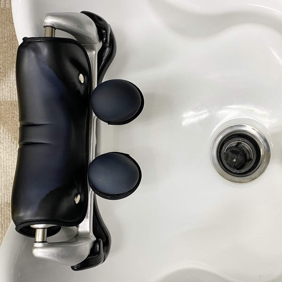 左右対称で横に広い形状のボウルは縁の高さをおさえ、施術者の肘がボウルに当たらないようにしておりますので、両手で行うバックアプローチに最適です。