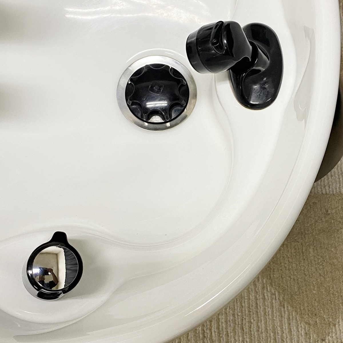 イスを回転させ、YUMEボウルをスイングする事で、お客様は座ったままシャンプーポジションへスムーズに移行させる事が出来ます。