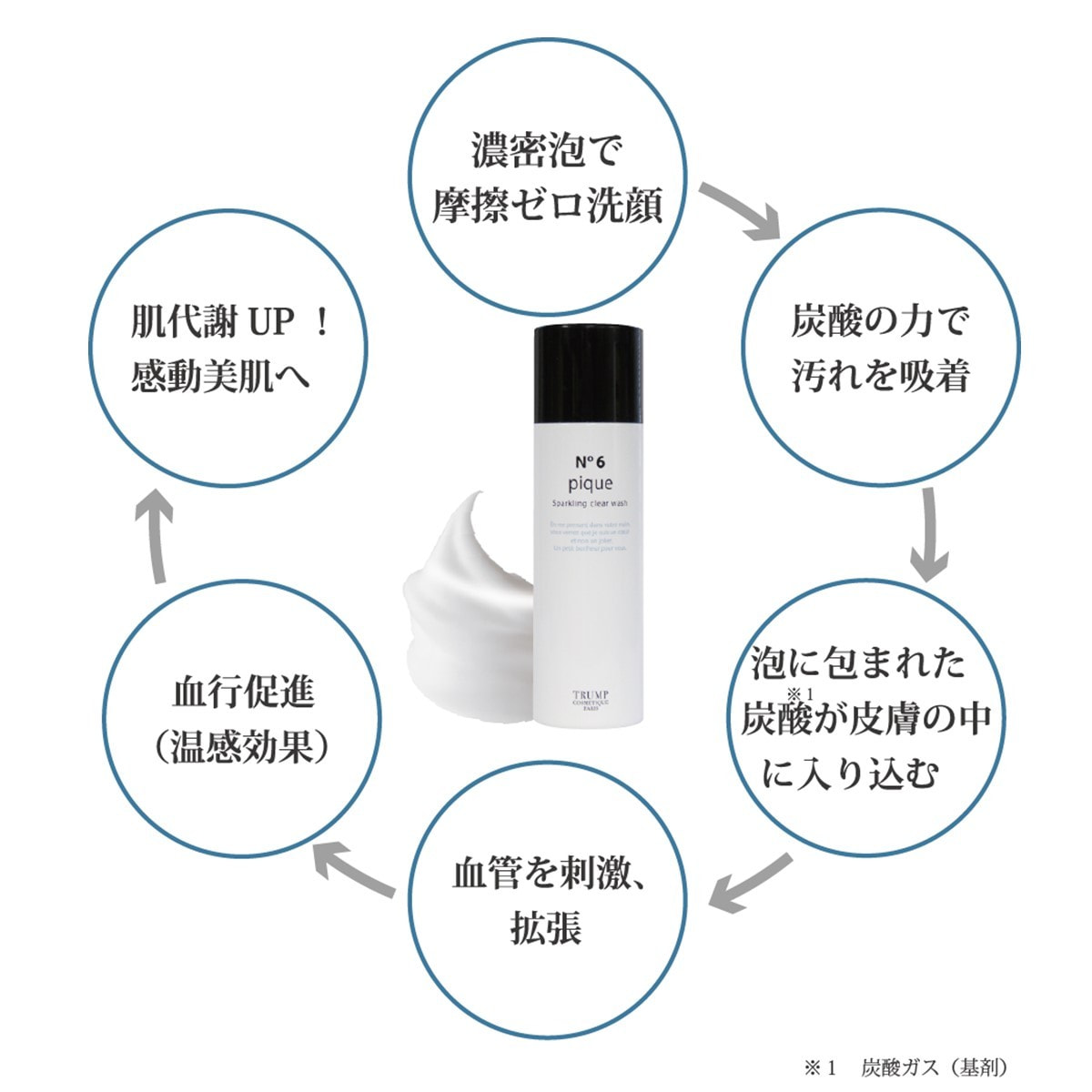 泡立て不要!弾力のある高濃度※1炭酸※2泡で汚れを吸着。