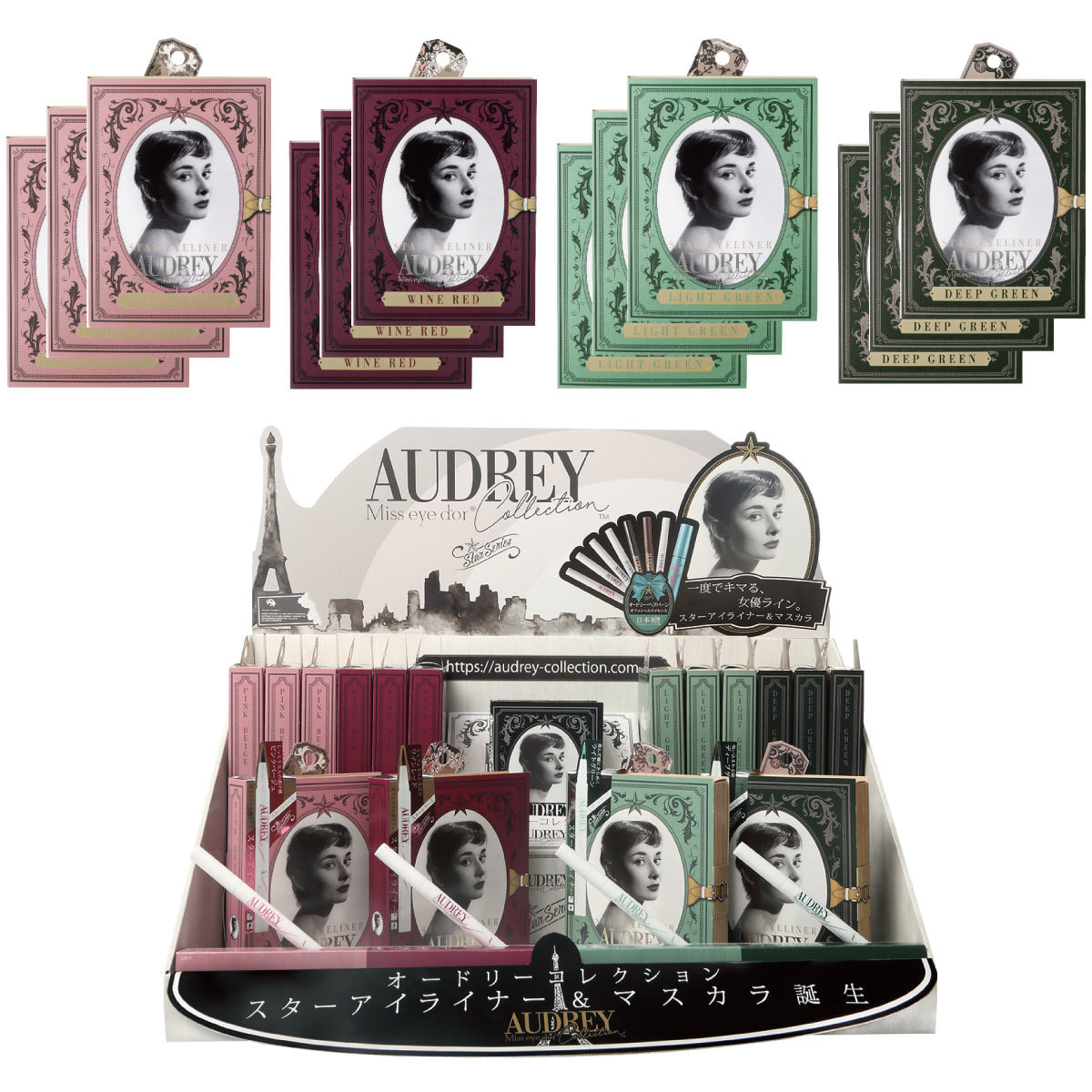オードリーコレクション スターアイライナー ピンクベージュ、ワインレッド、ライトグリーン、ディープグリーン 各4点