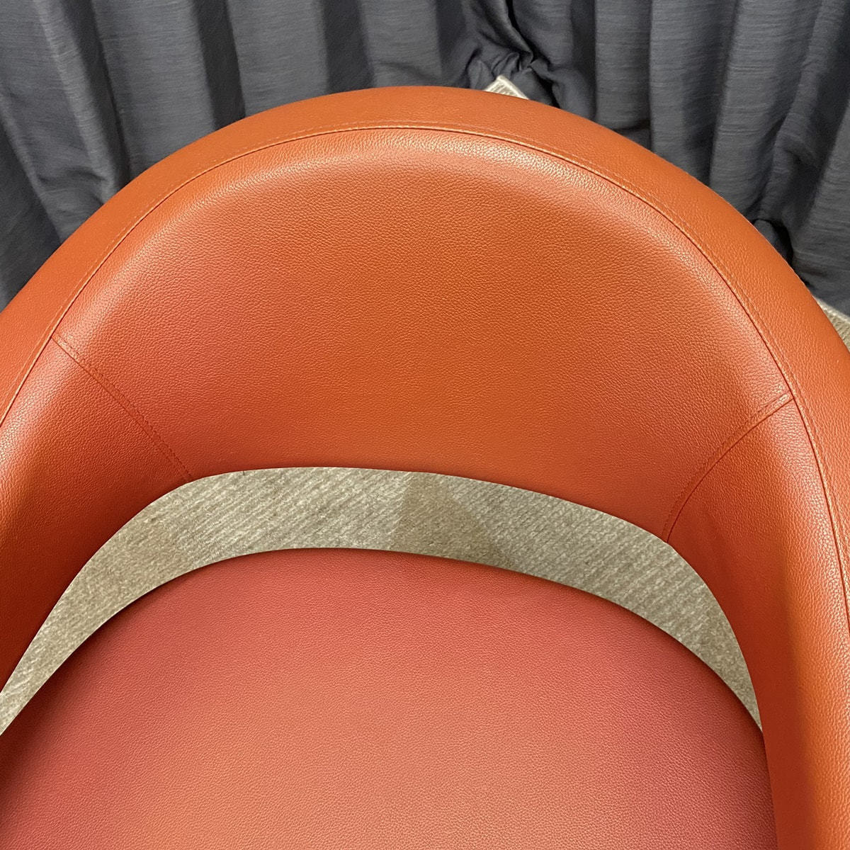背もたれと座部をアームでつないだ一体感のある包み込むようなデザインで、座り心地も抜群です。