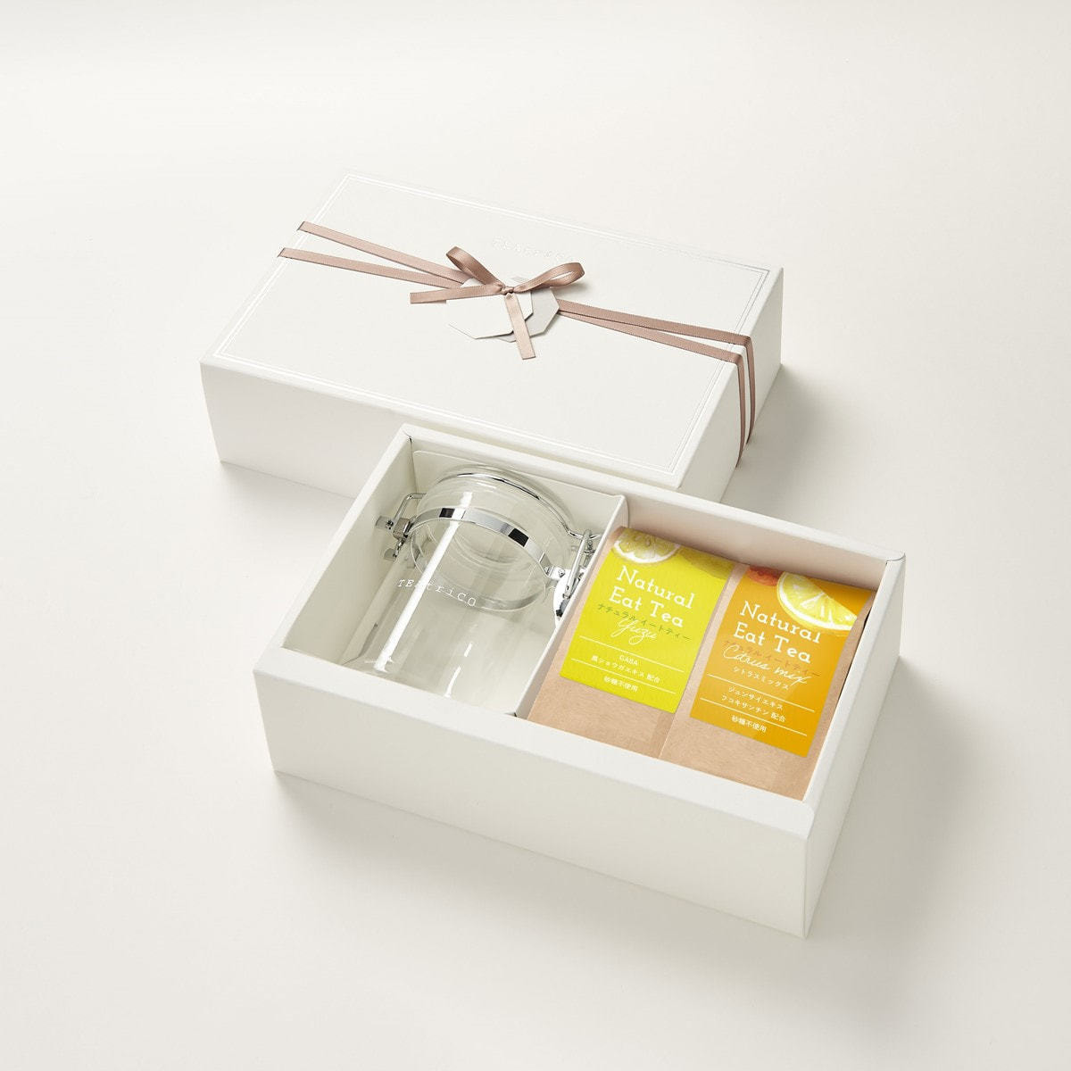 ティートリコのオリジナルキャニスターとセットになった、プレゼントにぴったりなギフトボックスです。