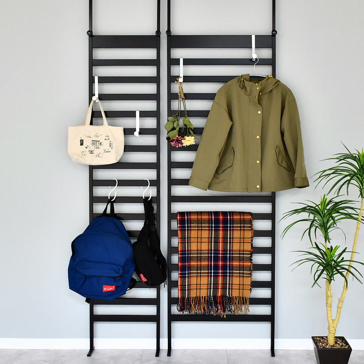 お好みの場所にフックを引っ掛けることができるため、自分好みのディスプレイにすることができます。