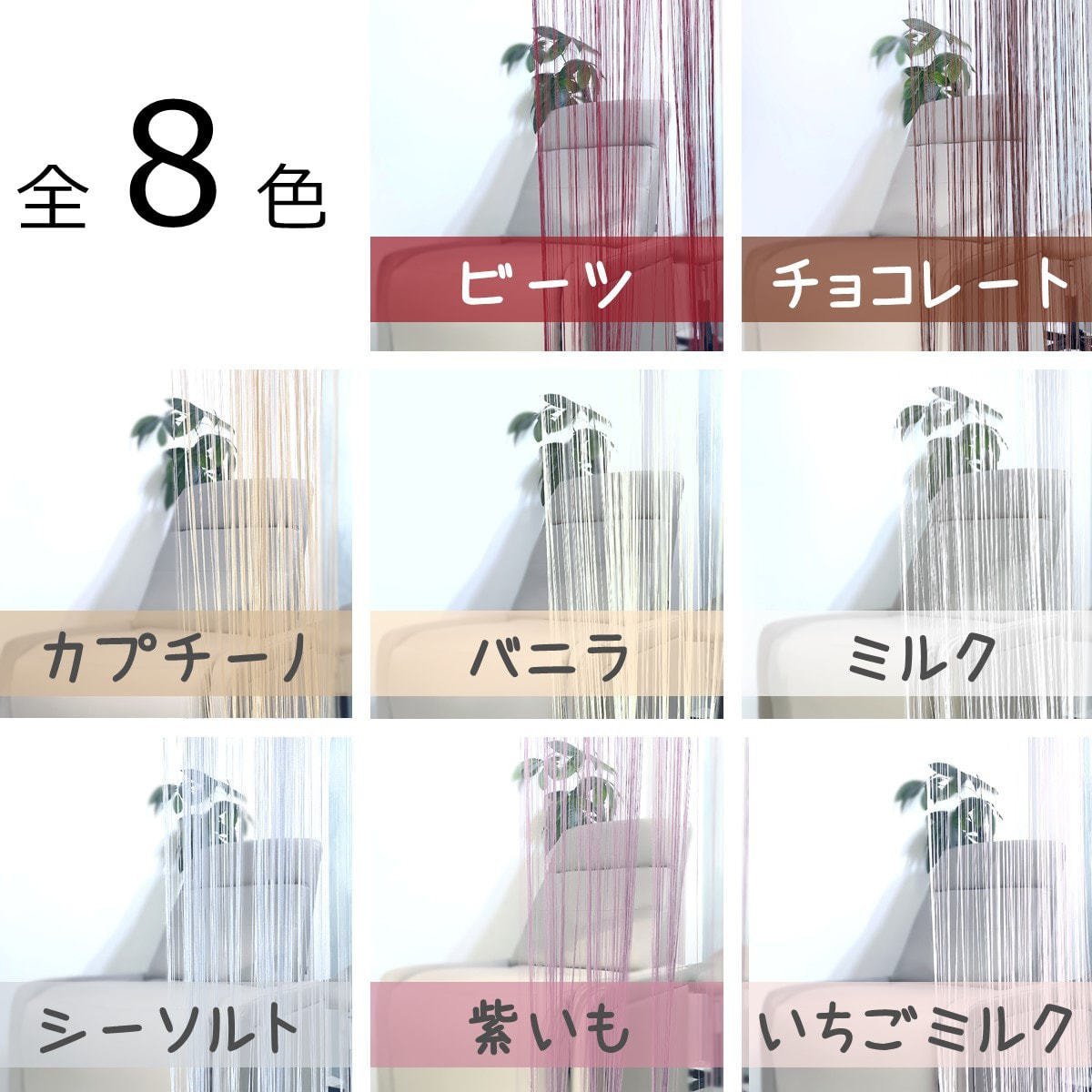 サロンの空間づくりに色とりどりなストリングカーテンを