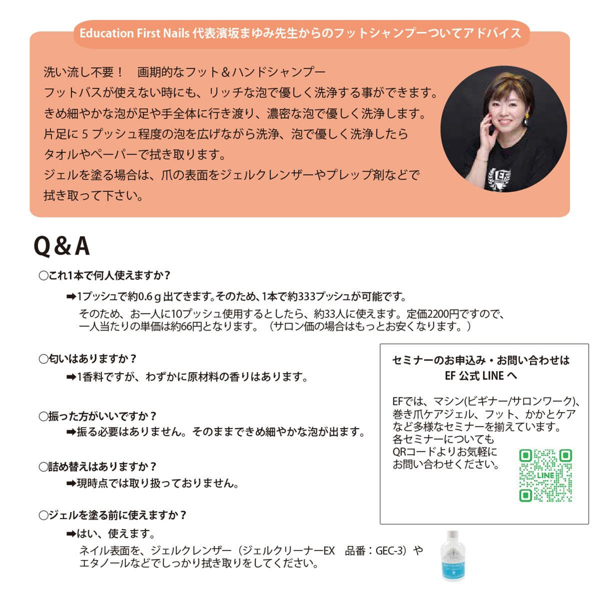 片足に5プッシュ程度の泡を広げて優しく洗浄したら、タオルやペーパーで拭取ります。