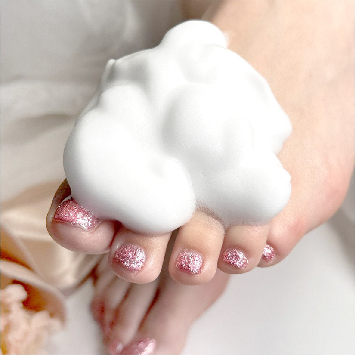 フットバスが使えないときも、リッチなもこもこ泡で優しく足や手を洗浄することができる、