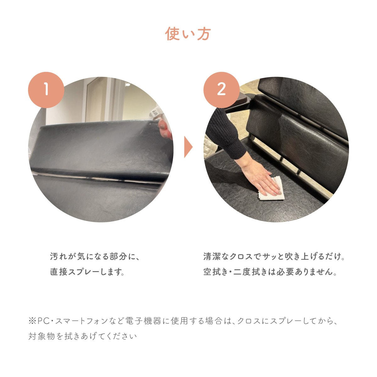 ※電子機器等に使用する場合は、直接スプレーせず布に吹きかけてからお使いください。