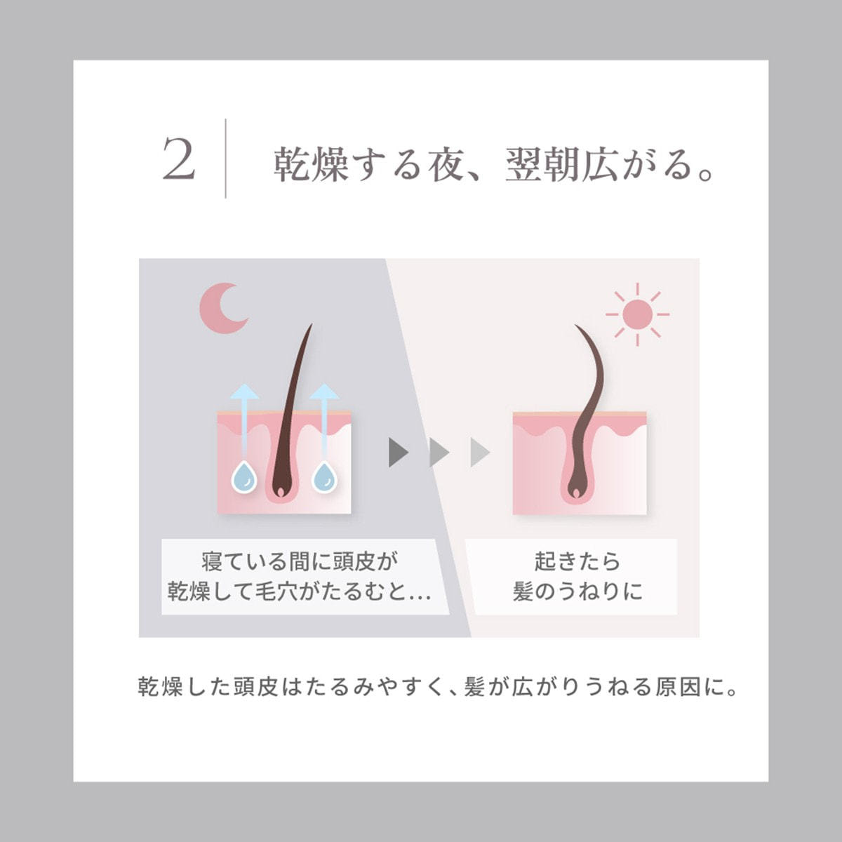 夜の乾燥は髪だけでなく、頭皮にも影響を与えます。