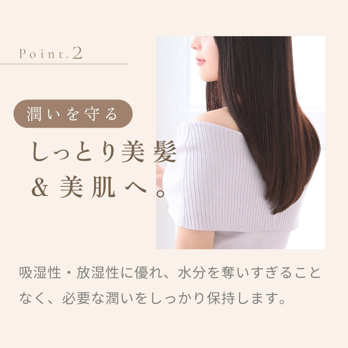 さらに放湿性に優れ、水分を奪いすぎることなく、肌や髪を乾燥から守ります。