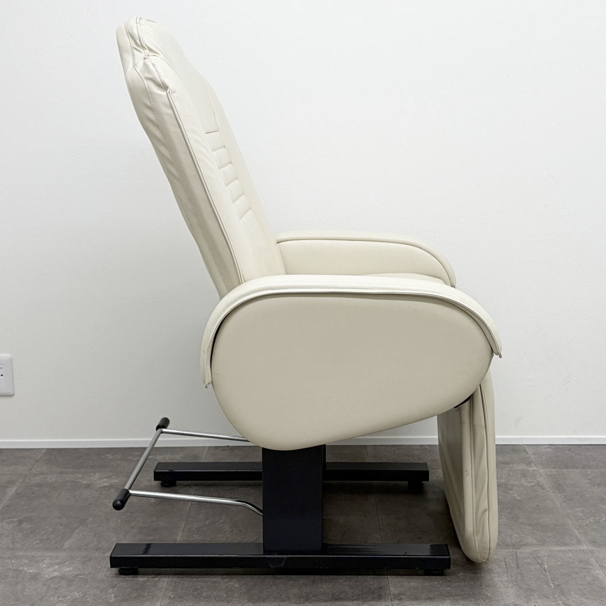 背もたれと脚部シートがリンクして動作し、フットバーを踏み背もたれを引くことで、スムーズに施術ポジションへセットすることが可能です。