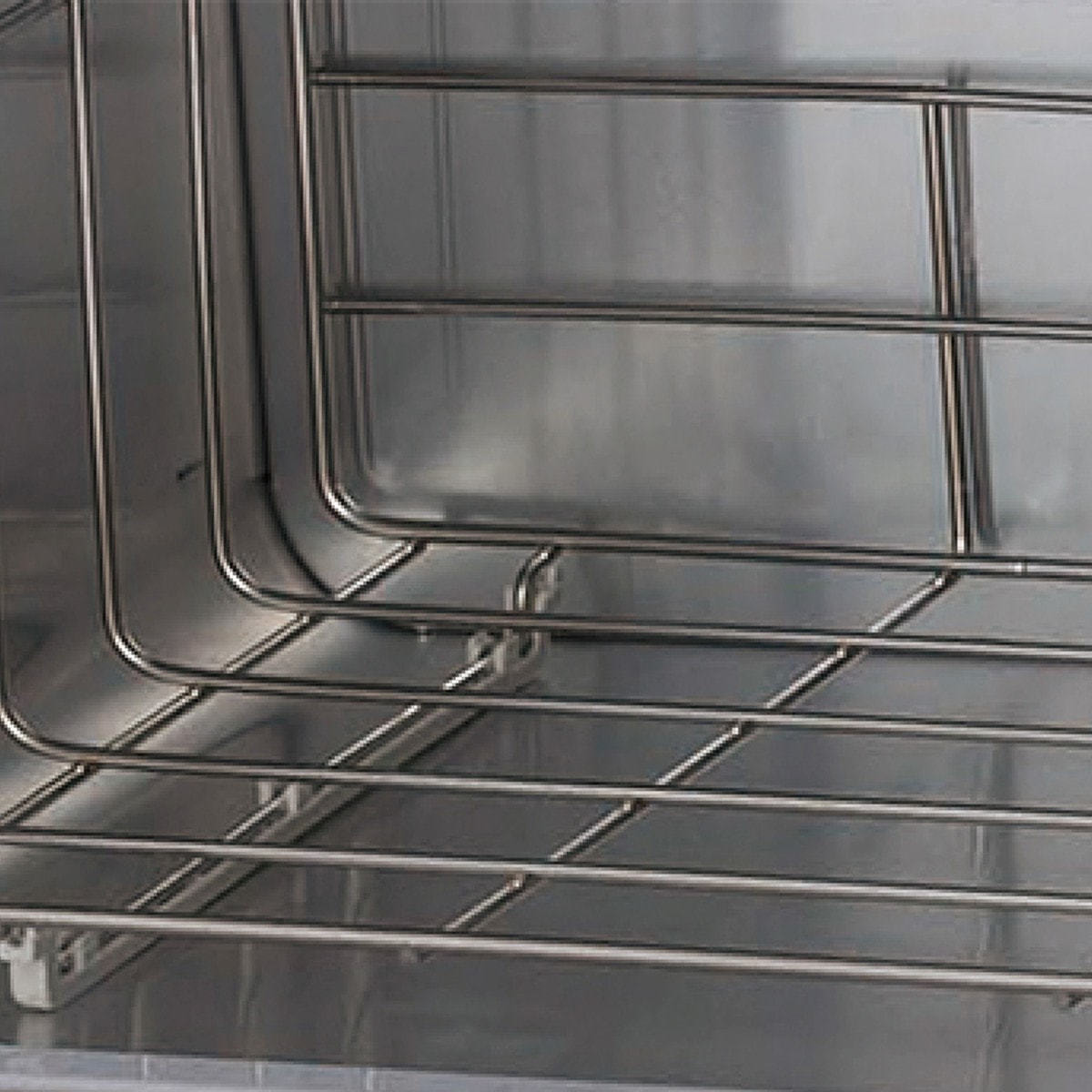 タオルの収納や取りだしに便利なステンレス金網トレーが装備されています。