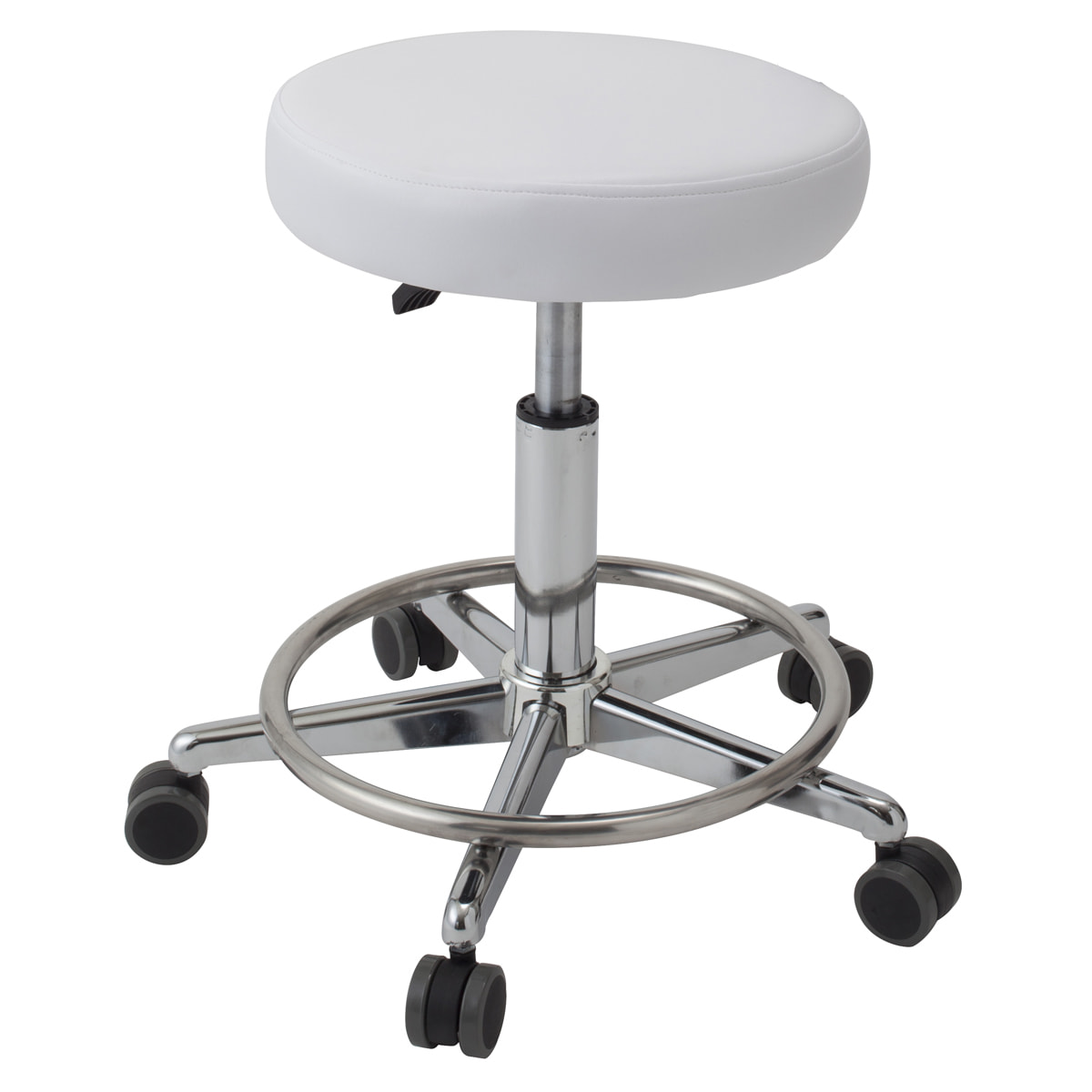 足載せリング付きなので作業しやすい!「リング付DXスツール 」です。サイドのレバーで座面の高さを調整します(ガス圧昇降タイプ)。キャスターは双輪タイプを採用しているので、差動回転を行い高い旋回能力を発揮!動きがとってもスムーズです。
