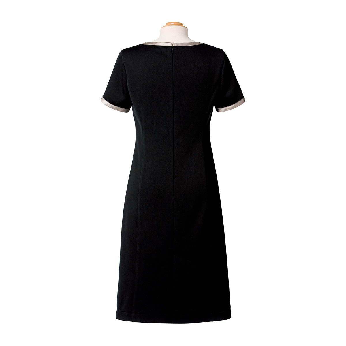 VネックワンピースS-18(S)(ブラック×ベージュ)