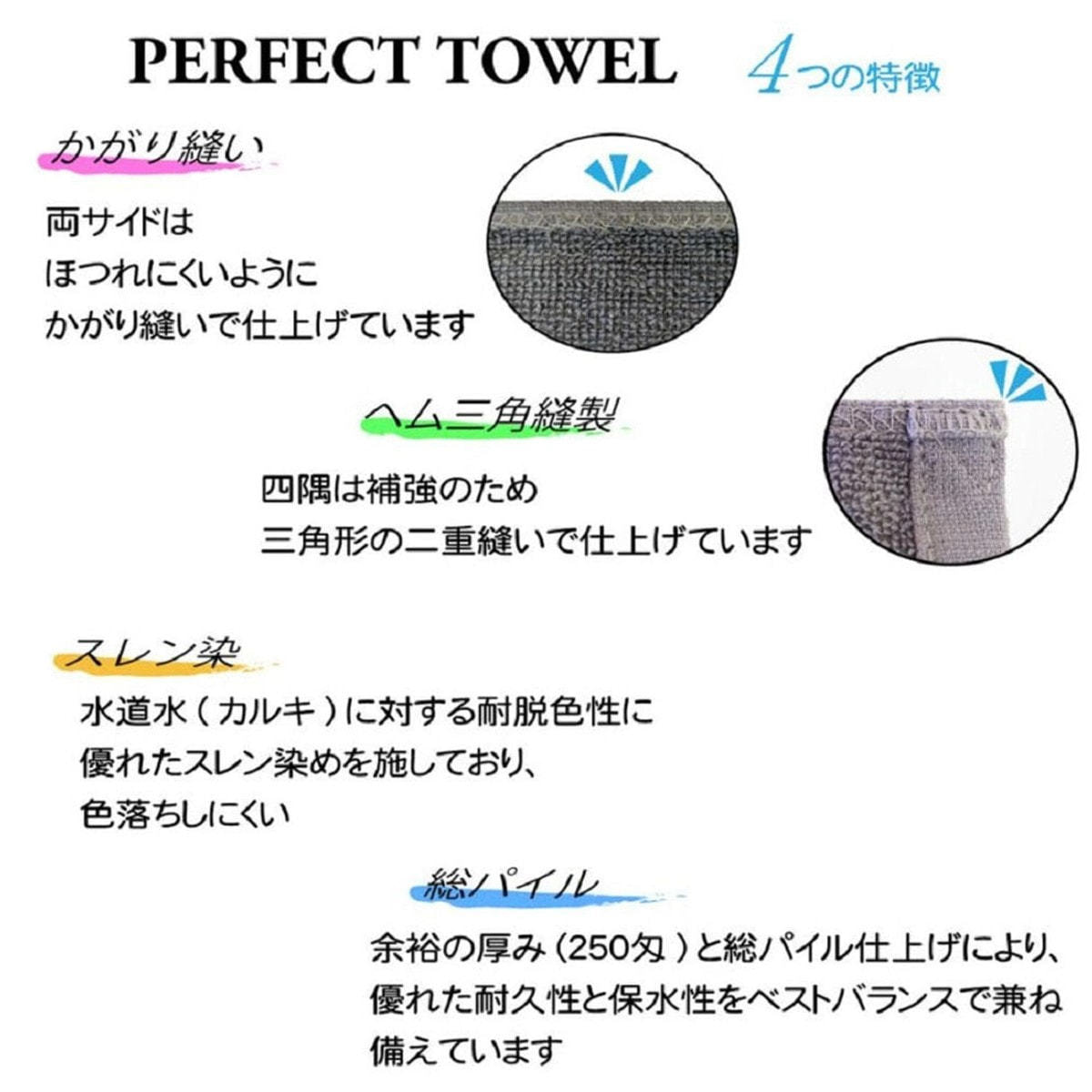 余裕の厚み(250匁)と総パイル仕上げにより、優れた耐久性と保水性をベストバランスで兼ね備えています。