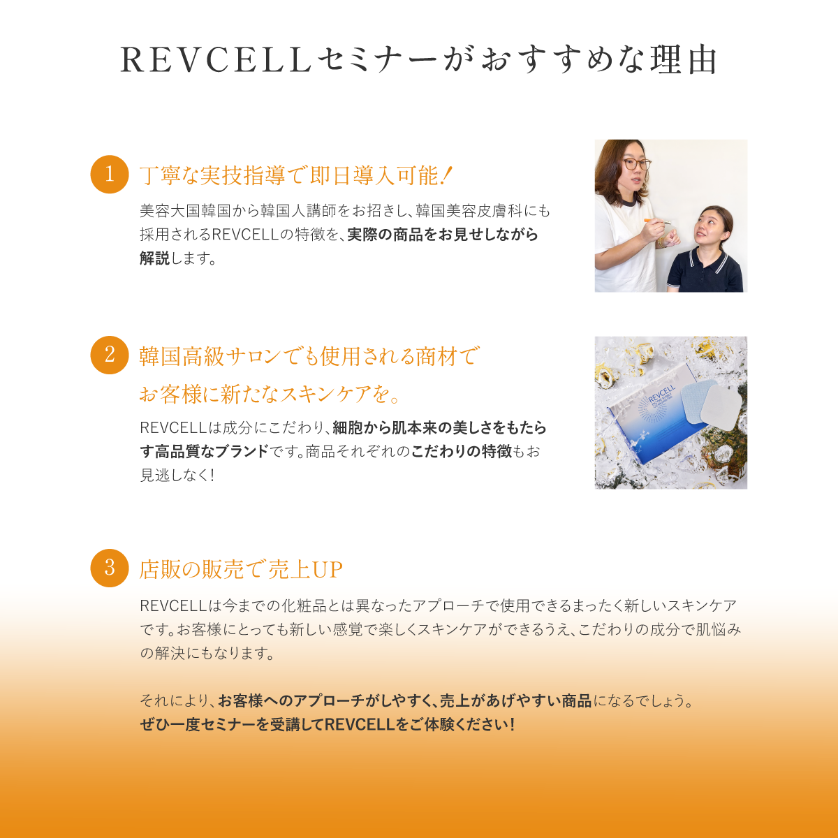 本セミナーでは、REVCELL日本代理店の韓国人講師が使い方・効能・施術ノウハウを丁寧にレクチャーします。