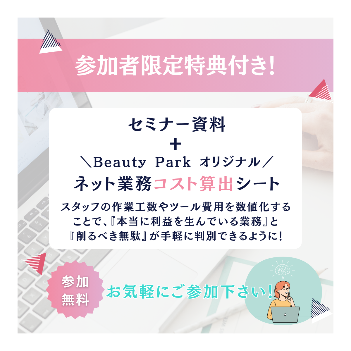 ネット業務コスト算出シート及びセミナー資料をアンケート回答者全員にプレゼント!!