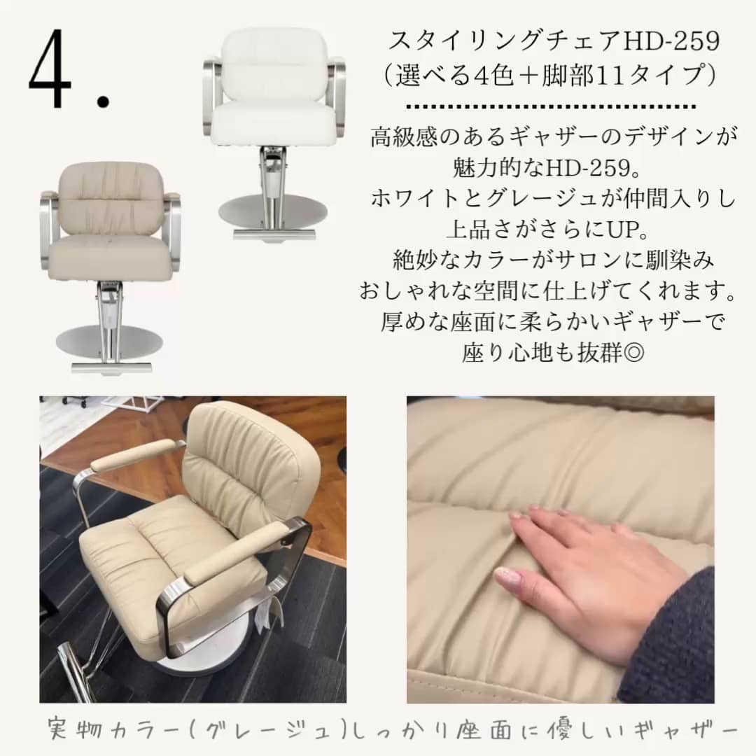 4.「スタイリングチェアHD-259(選べる4色+脚部11タイプ)」