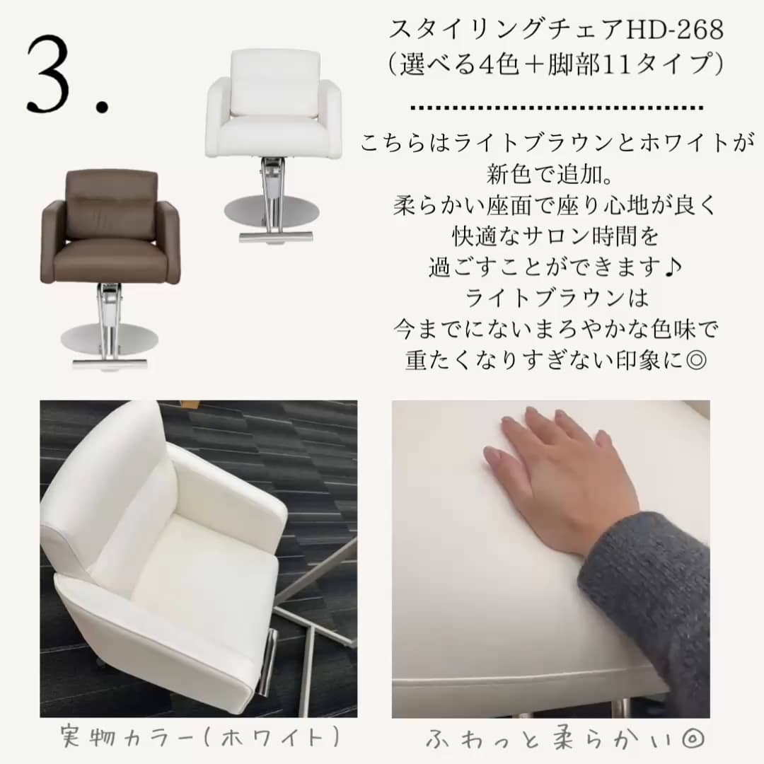 3.「スタイリングチェアHD-268(選べる4色+脚部11タイプ)」